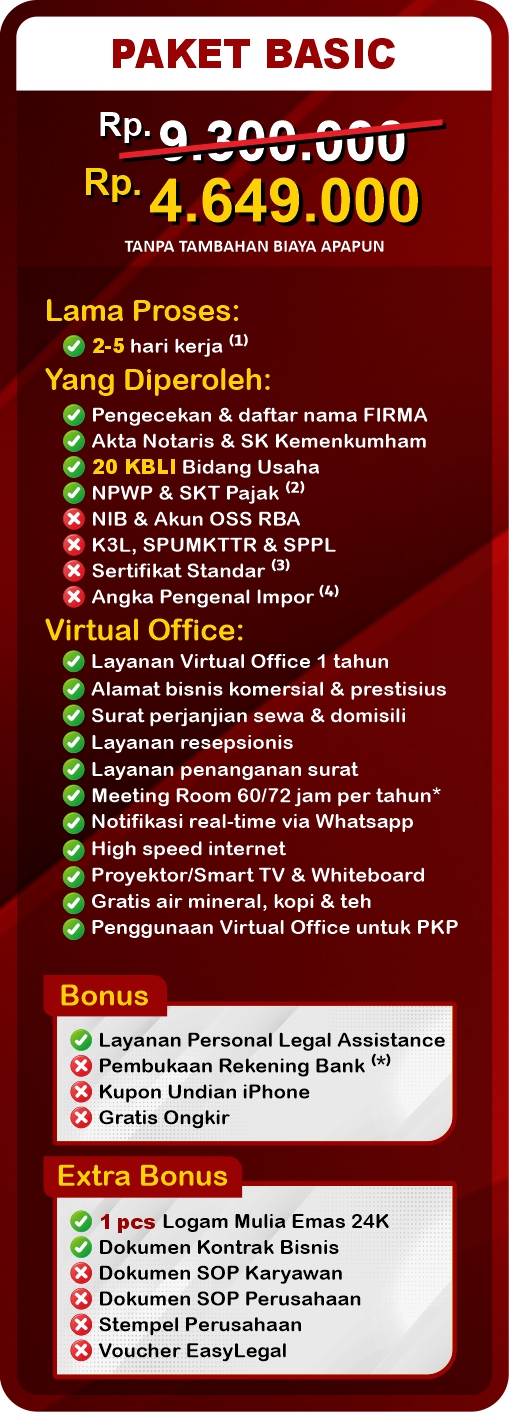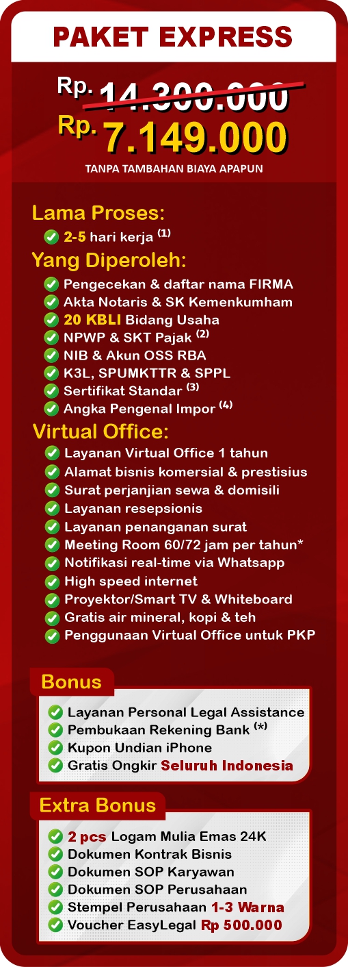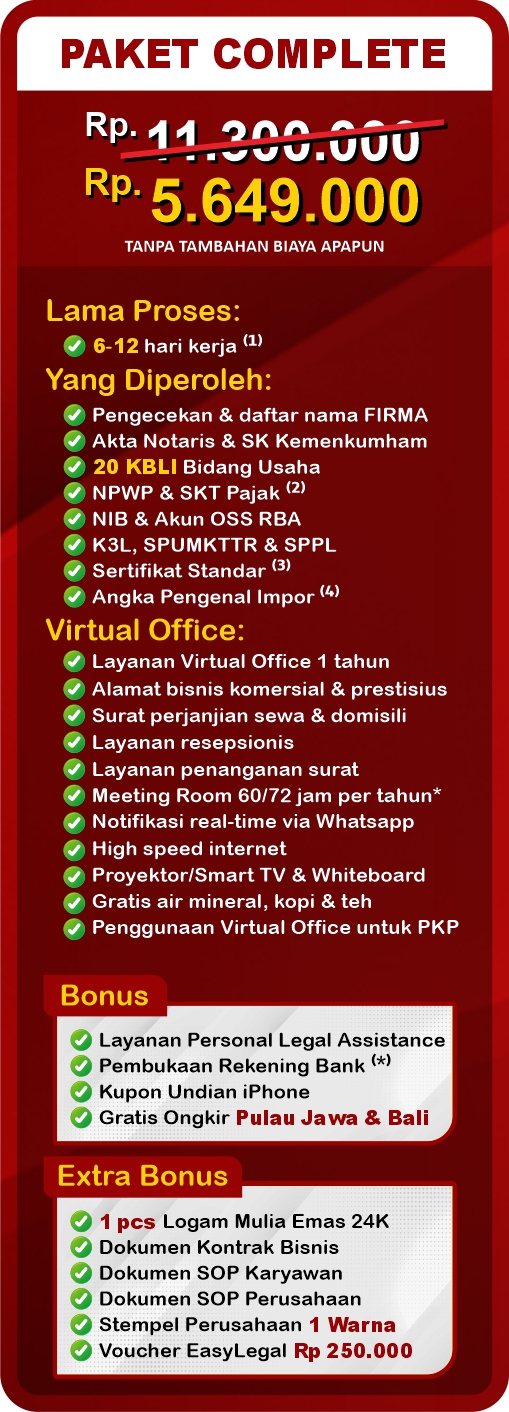 HARGA JASA PENDIRIAN FIRMA DAN VIRTUAL OFFICE JAKARTA