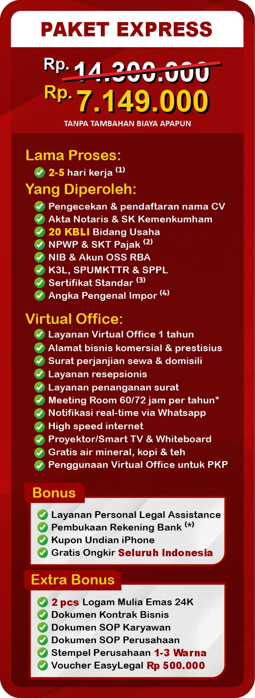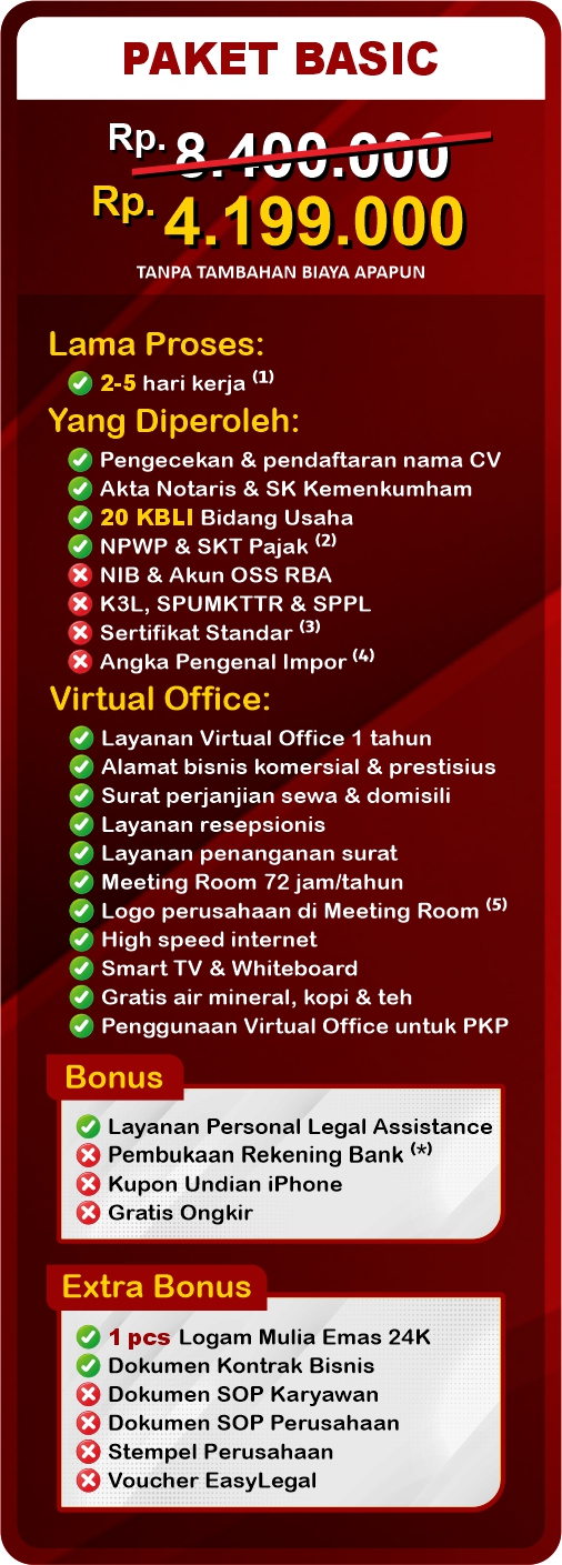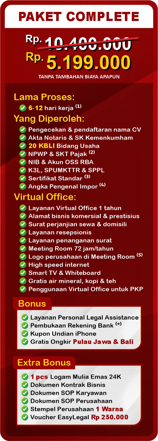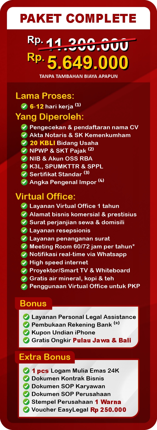 Nikmati Special Deal Diskon 50% untuk pendirian CV. Jangan lewatkan kesempatan ini karena kuota sangat terbatas
