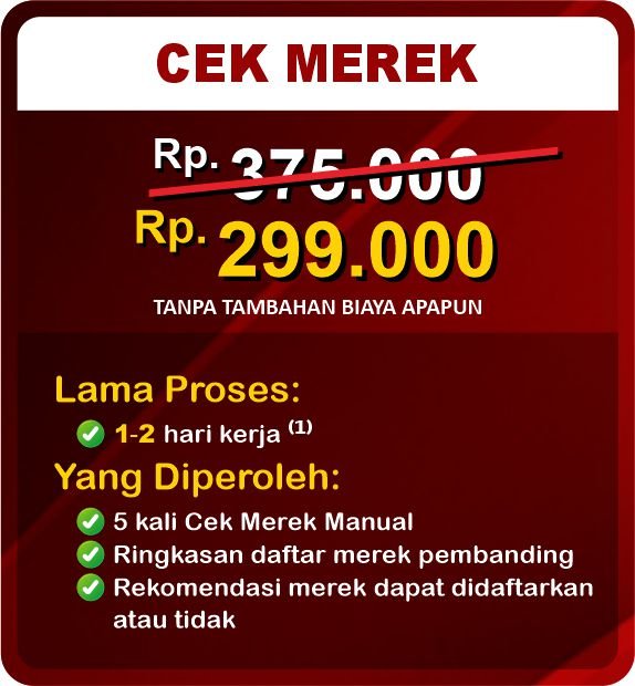 Note: ⁽¹⁾ Setelah persyaratan lengkap & pembayaran kami terima, ⁽²⁾ Maksimal 5 kali cek merek, ⁽³⁾ Sertifikat merek elektronik diperoleh setelah masa pengumuman ± 6 s/d 18 bulan selesai